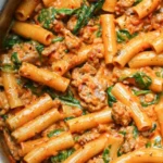 This Creamy Sausage Rigatoni with Spinach, Garlic, and Tomato Cream Sauce embodies the comfort of home-cooked meals. It invites laughter, nourishment, and conversation around the table. So roll up your sleeves, gather your ingredients, and let the rich aromas fill your kitchen. Embrace this journey and enjoy every delicious bite. Happy cooking!