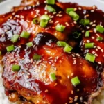 This dish features tender chicken thighs in a sweet and savory honey garlic sauce, perfect for a comforting meal.